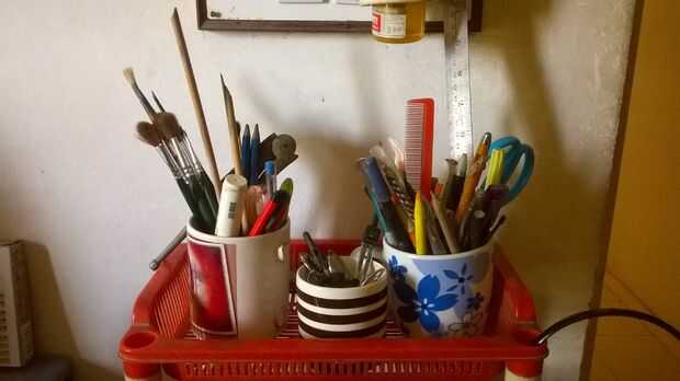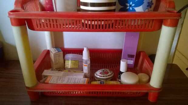 tengo un montón de pequeñas cosas que necesito mantener segura y accesible, ya sea mi delineador de ojos o mi caso lentes de contacto o mi paintbrushs. Así que conseguí este rojo doble soporte nivel que permanece en mi mesa de estudio ank mantiene todas las cosas que necesito para usar con frecuencia. También podría colocar en un estante y crear más espacio.