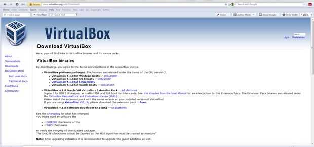Ir a https://www.virtualbox.org/wiki/Downloads y descargar la versión que mejor se adapte a tú computadora. Instalarlo es sólo ejecutar el exe descargar y afinando algunos detalles, si no te gusta los valores por defecto (si no entiendes el palo de opciones con los valores por defecto). Después de instalar ejecutarlo. Usted debe obtener algo como la pantalla arriba (sin las 2 máquinas virtuales en mi instalación)
