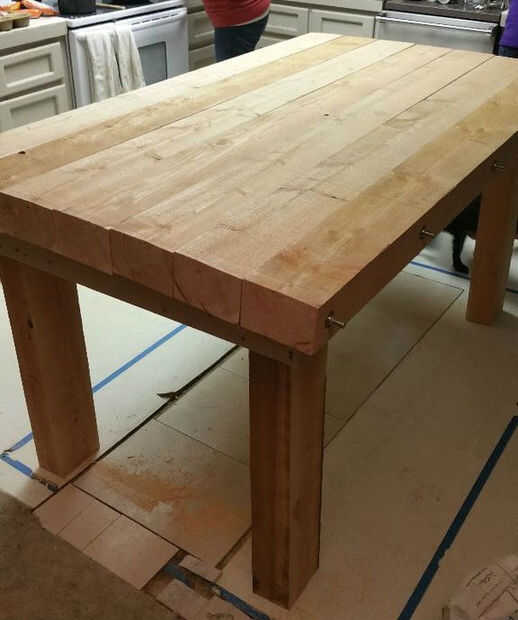 Mi esposa querida una mesa de proyecto que ella podía hacer la preparación de alimentos, costura y otros proyectos en. Ella también quería ser inacabado - como una mesa de trabajo. Así que pensé que sería la mejor opción para construir algo tan carnosos que ella no podría nunca se quejan de que no dura lo suficiente - no que mi esposa se queja como ella es la criatura más dulce en la tierra.
