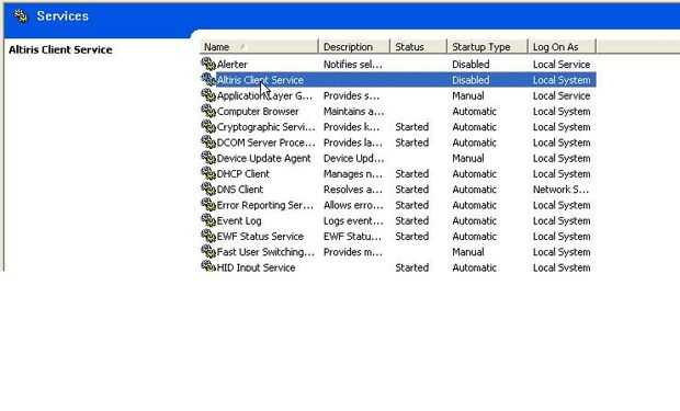 Detener Servicios de cliente Altris luego haga clic en él y editar propiedades, específicamente el cambio de automática comienzan a discapacitados es el software principal que el cliente utiliza para realizar el trabajo que originalmente fue diseñado para y es unos valiosos megas en el disco.