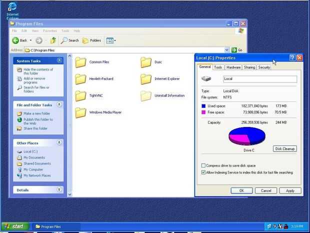 Después de hacer esto cuando se reinicie otra vez no deben recibir mensajes de error y si comprueba las propiedades de la unidad C encontrará que tiene más de 70 megas de espacio para instalar programas.