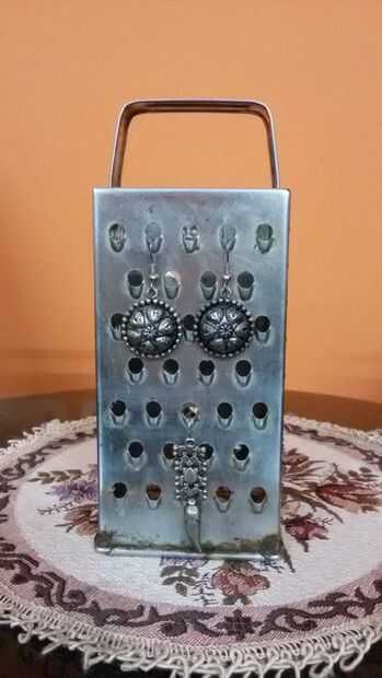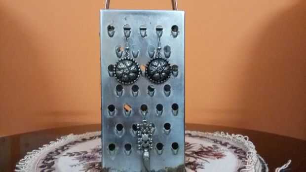 Nunca pierde un pendiente colgando de sus pares en un rallador viejo. También se puede considerar almacenar cosas dentro del rallador.