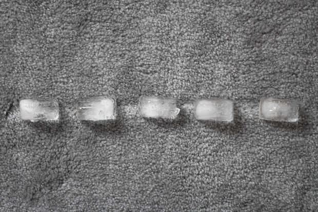Coloque los cubitos de hielo a lo largo de la abolladura y dejar que se derrita. Como se funden y la alfombra comienza a secar, ¡ pelusa detrás para arriba y parecen normal otra vez.