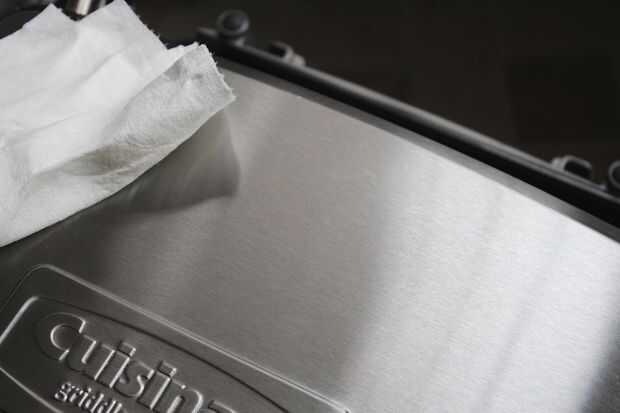 Limpie la superficie y luego aplique una cantidad pequeñita de aceite de coco y frotarla sobre el uso de trazos largos agradables - buff hacia fuera con el paño y disfrutar súper brillante de acero inoxidable. Realmente no tarda mucho en todo, se debe tener aspecto brillante, pero no mojado. : D