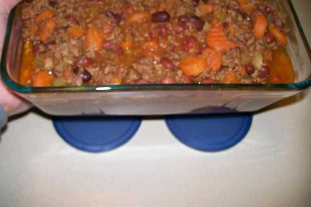 Coloque un Plástico tapaderas debajo de un plato caliente o pan.