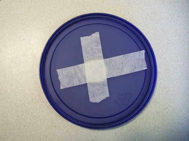 3) las 2 secciones más grandes se dividen en 4 secciones, dividiendo por la mitad con la cinta,