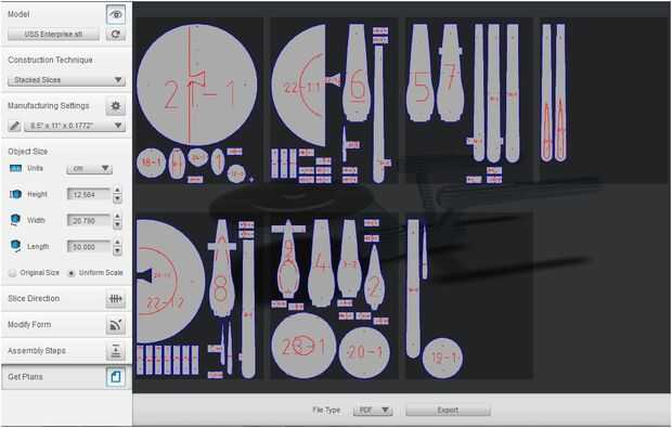 Primero, descarga y extracto del archivo zip, si usted quiere cambiar el tamaño de 50 cm, abren archivo Make 123D en el archivo zip. Luego, asegúrese de que está seleccionada la escala uniforme y luego cambiar las dimensiones al tamaño deseado. Después de haga clic en el botón "conseguir planes" Seleccione tipo de archivo y haga clic en exportar.