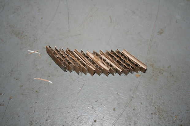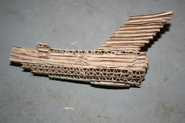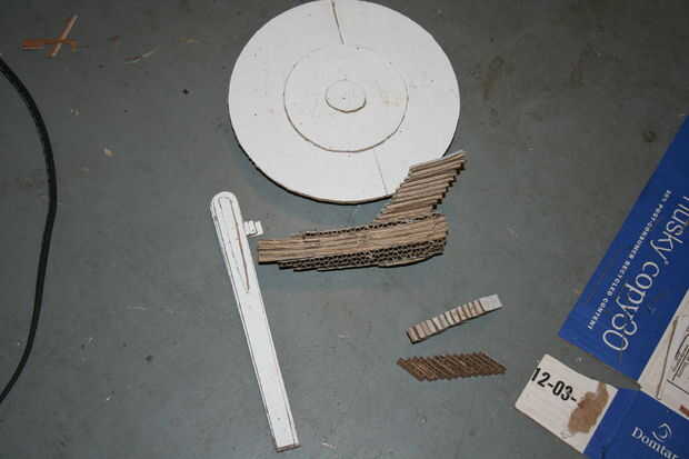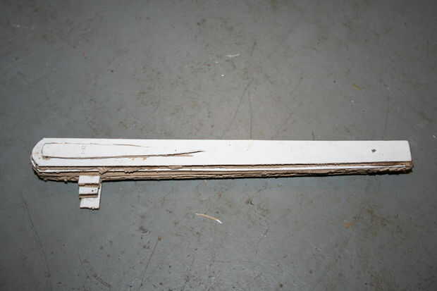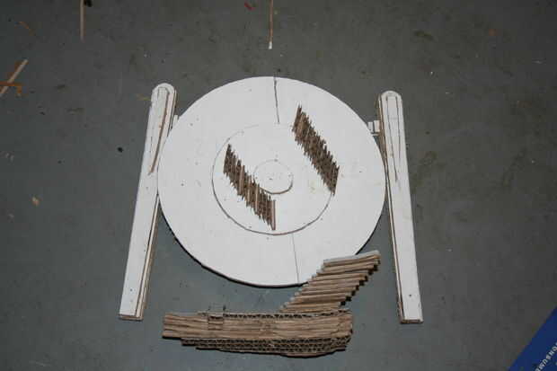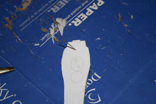Para hacer el casco principal, alinear cada pedazo de cartulina en orden de #1-10. Introducir un par de pernos a través de los puntos y alineados con las marcas correspondientes en el segmento siguiente. Una vez que los alinea, pegamento. Para hacer las costillas de lado, alinear cada pedazo de cartulina rectangular en orden de #11-3 a 22-3 para la primera costilla. Para el segundo puntal que alinee el conjunto restante de emparejar piezas. Introducir un par de pernos a través de los puntos y alineados con las marcas correspondientes en el segmento siguiente. Pegar las capas cuando tienes alineados. Para hacer el puntal delantero, montar las piezas rectangulares de la misma manera como los puntales de la cara. Por último, pegar el puntal frente al cuerpo principal.