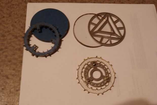 En el modelo tengo dos diferentes tipos de materiales en dos diferentes espesores. Decidí que el chorro de agua metales (aluminio 6061) trabajados a máquina, y los plásticos (PETG) laser corte. Por el momento ignoraba el anillo externo porque no hubiera sido rentable mecanizar una parte adicional en ese espesor.