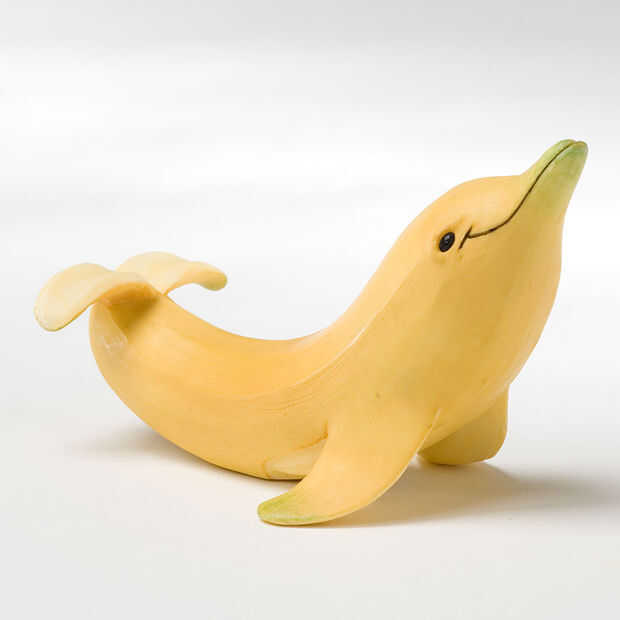 Para el lado aletas al cuadro y planean para donde va hacer su primer corte. Se recomienda utilizar un lápiz para marcar ligeramente donde usted va cortando. Asegúrese de que la curva de las aletas y hacer aproximadamente 1,5 pulgadas simétricamente a cada lado. Un lado y el frente se ve de su pronto a ser plátano delfín se proporciona. Usted debe ser muy excitado.