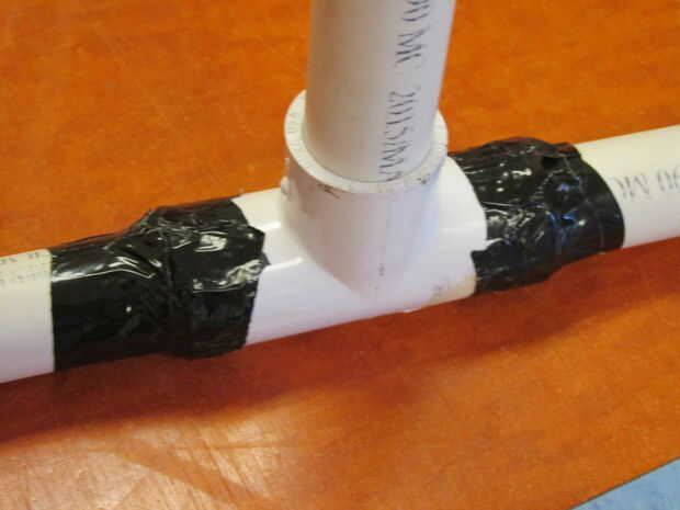 Su base se ha construido, pero necesita para protegerlo de las fuerzas que pueden socavar su integridad. Con cinta adhesiva, fije cada empalme de la base. Asegúrese de que la base es segura, y que es equilibrado en cada lado para que cuando se agrega la parte superior del molino de viento, no caiga.