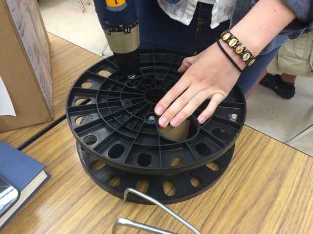 Utilizando un taladro eléctrico, desarmar tu carrete por lo que se asemeja a una rueda que encajará fácilmente en tu tubo de PVC. En este punto, verifique que la bobina se adapta a su pipa.