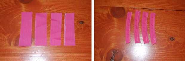 -Doblar las tiras por la mitad y coser