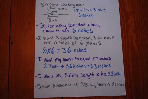 2) añadido tela plisado X # de pliegues desea = cuánto extra añades a medida de la cintura