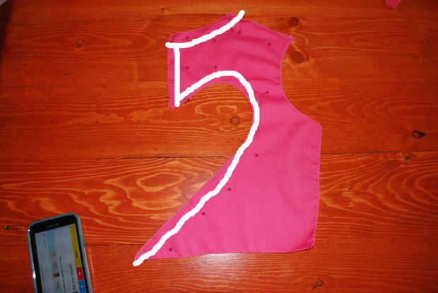 1) agarrar 2 piezas blusa de nuevo y línea de les con derecho juntos