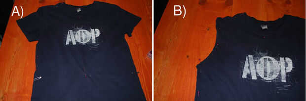 -Doblar la camisa por la mitad y marcar el punto medio con pernos, como se muestra