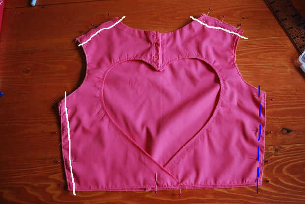 3) coser con una puntada de hilvanado Dónde está la línea azul