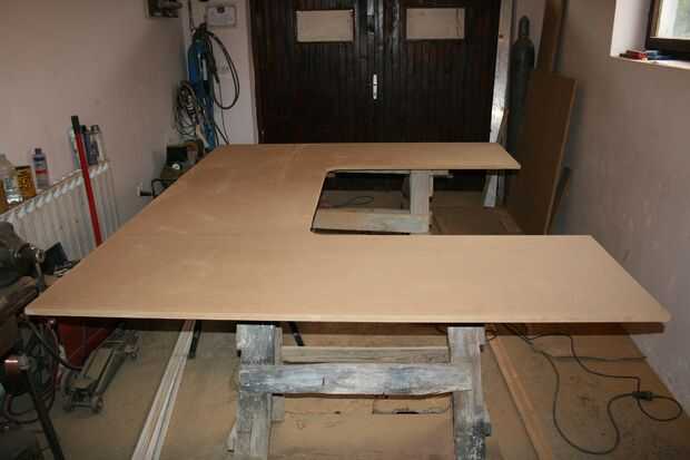 Después de la coloración, escritorio fue pulido con máquina para conseguir el look brillante.