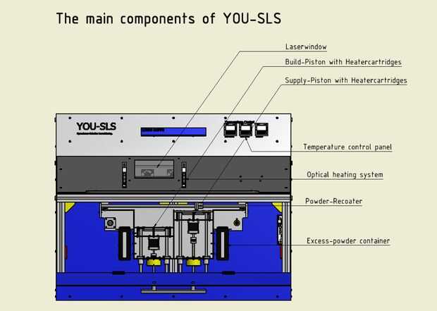 Sinterización selectiva del Laser trabaja mediante la exploración de un láser sobre la superficie de una fina capa de polvo. El fusible de las partículas en polvo donde el láser golpea. Esta manera, se crea una sección transversal del modelo. Después de que termine esta primera sección, se deposita otra capa fina de polvo y otra sección se sinteriza el rayo láser. Este proceso se repite hasta que el modelo se completa
