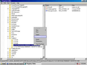 Cuando aparece la siguiente ventana ubicar la clave de registro 'HKEY_LOCAL_MACHINE\SOFTWARE\Microsoft\WindowsNT\CurrentVersion\ProfileLift.