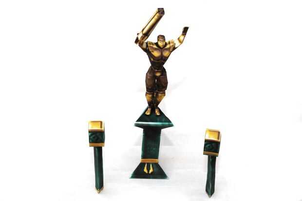 Mostrar sus trofeos Unreal Tournament que ganó a tus amigos! Sólo imprimir, cortar y pegar juntos. Algunos necesitan un marco de apoyo. Puede escalar a tu gusto usando Pepakura Designer (ver las dimensiones allí). Actualmente se escalan hacia los otros papercrafts, por lo que probablemente la escala para un tamaño adecuado y por supuesto más fácil pegar. El trofeo en la foto se escala por 4. También hay 2 versiones fácil (campeón y trofeo de asalto), incluidas si el personaje es demasiado difícil de hacer! Simplemente reemplace la textura con la versión fácil donde el carácter se imprime sobre la textura!