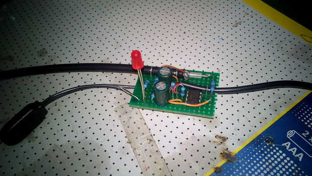 El LED rojo está sólo allí así que no olvide apagar la fuente de alimentación del amplificador operacional.