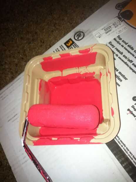mezclar la pintura y verter alguno en el cubo. Sumerja el rodillo en el cubo y estirar el exceso en un lado hasta que haya una cantidad uniforme de pintura sobre el rodillo. Rodillo en la U va uniformemente en diferentes direcciones para eliminar pequeños montones y líneas.