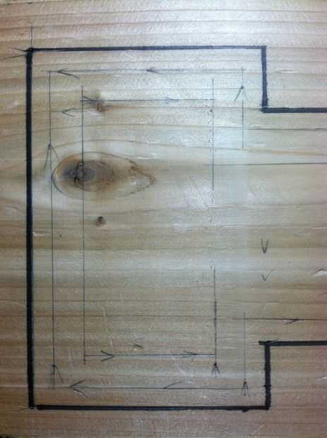 Con un cuadrado y un borde recto, crear líneas de referencia en el bloque. Básicamente crear una esquina cuadrada y medir desde la esquina para marcar donde van las líneas. Dibujar con precisión el contorno de la U.