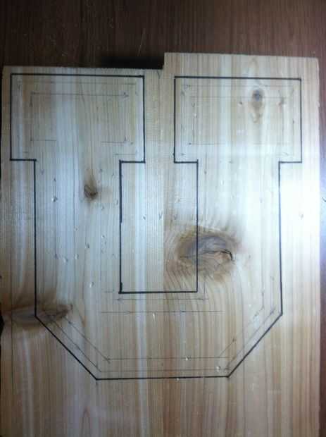 Haciendo el diseño directamente sobre el cedro era complicado ya que el grano mantiene dando la ilusión de mis líneas no eran rectos. Yo no delinear la U en el marcador. Hizo inexacta medición de y cortar la línea. 52 LEDs es excesiva ya que crea una pantalla muy brillante.