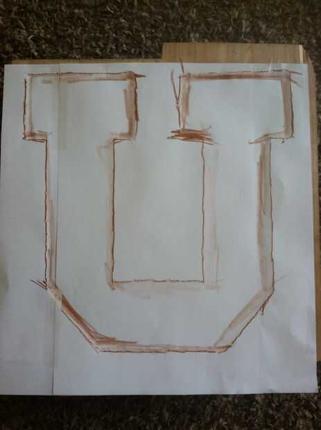 Usé dos trozos de papel de impresora pegadas juntas y un palo para colorear para hacer un contorno de la espalda.