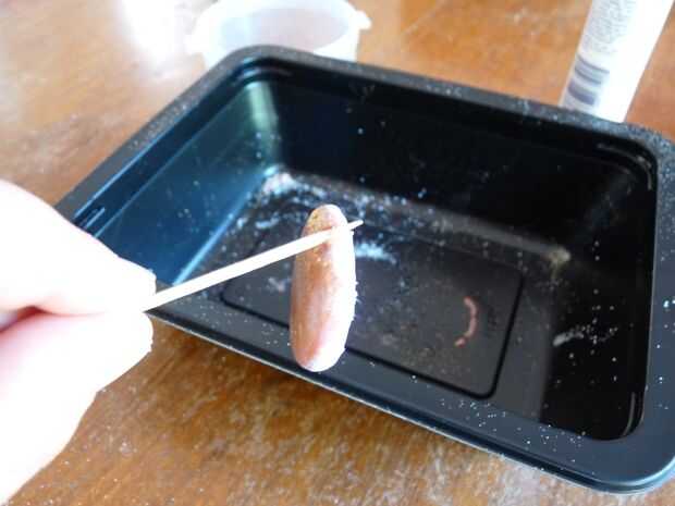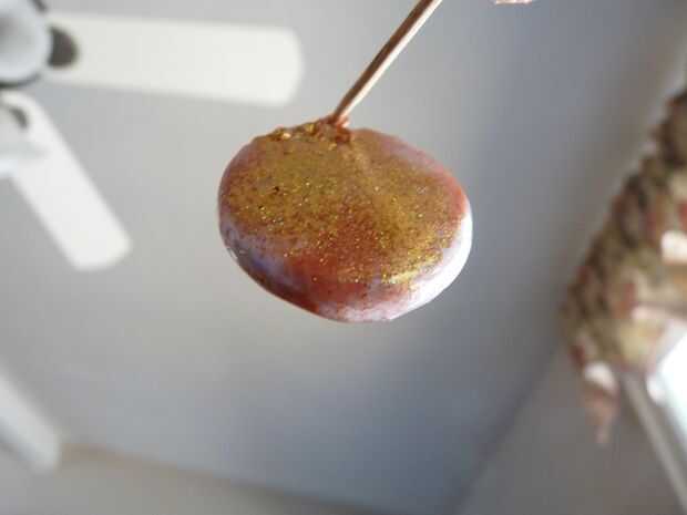 Cuando la superficie se haya enfriado, poner un palillo a través del lazo. Luego, cuidadosamente derrita la parte posterior y los bordes para suavizar cualquier asperezas. No demasiado el lazo de alambre o se deslizará fuera el polvo de grabación en relieve.