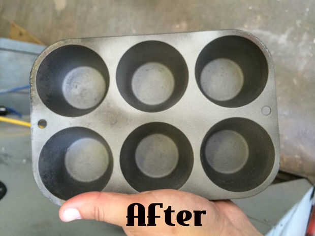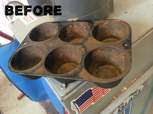 Chorro de arena es una manera rápida y fácil para restaurar viejos utensilios de hierro oxidado.