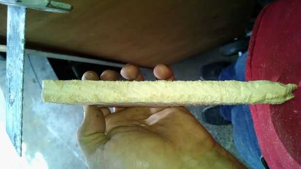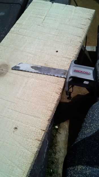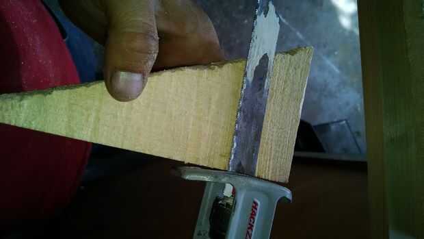 solía mi sawzall áspero encima de la madera y que se vea viejo y andrajoso arrastrando la hoja de lado y luego corté falsas grietas en los bordes, así como la punta de la sierra a gubia para simular los agujeros bug
