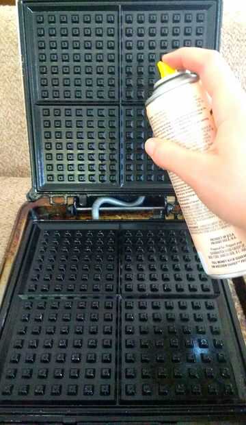 3. Rocíe su waflera bien y llenar la máquina con suficiente masa que cubre cada borde (por lo que se completa cuadrados), pero no lo suficiente como inundar los bordes.