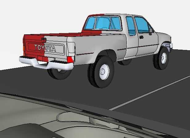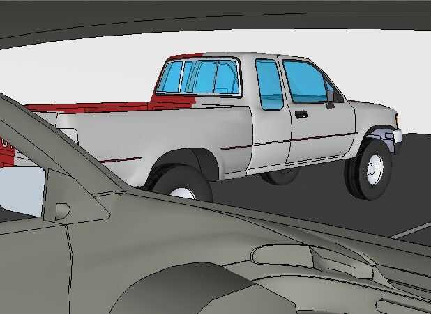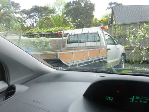 Bien, nunca dejé de tráfico medio para pedir, hasta hace poco: al parecer la señora preocupada no podía ver mis indicadores. Usted, sabe, puedo ver la lógica en la que, como las luces traseras son bastante bajas y los indicadores delanteros no son fáciles de ver en luz del día. He probado esto en Google Sketchup y otra vez con el coche de mi mujer: como se puede ver en las fotos, uno no puede ver las luces de la ute si está cerca de la ute.