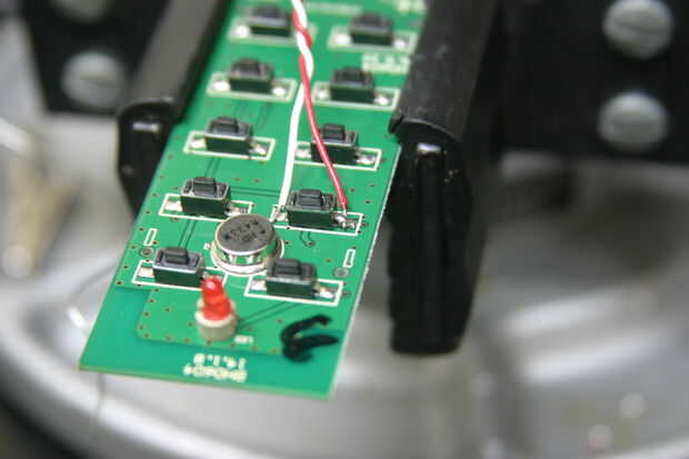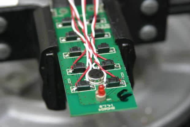 Una vez que todos los cables soldados, les aplane cuidadosamente hasta el PCB para que no se peguen. Será importante que esté planas contra el PCB cuando vayas a poner plástico de la unidad de control remoto caja detrás juntos.