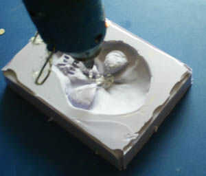 Me fui sobre el fondo entero del molde, asegurándose de que todas las grietas y espacios habían sido completamente llena. Si las burbujas forman en cualquier lugar dentro del molde, tomé un pin y les pinchó. Tuve que hacer rápidamente, antes del pegamento fresco y conjunto.