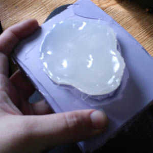 Puse el molde en el congelador y después de unos minutos, la hotglue había refrescado completamente. Entonces pude sacar del molde. (Él apareció bastante fácilmente. Me encanta silicona).