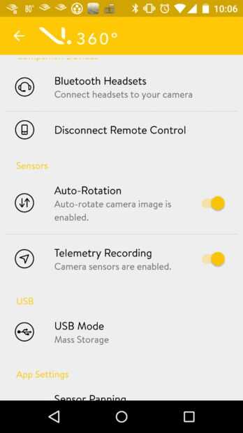 Usando la aplicación móvil de V360, habilite la opción de telemetría en la cámara de V360.