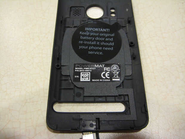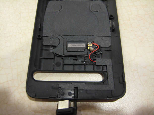 La soldadura de los cables de la tapa trasera de Powermat a contactos de la Palm Pre Touchstone bobina de carga.