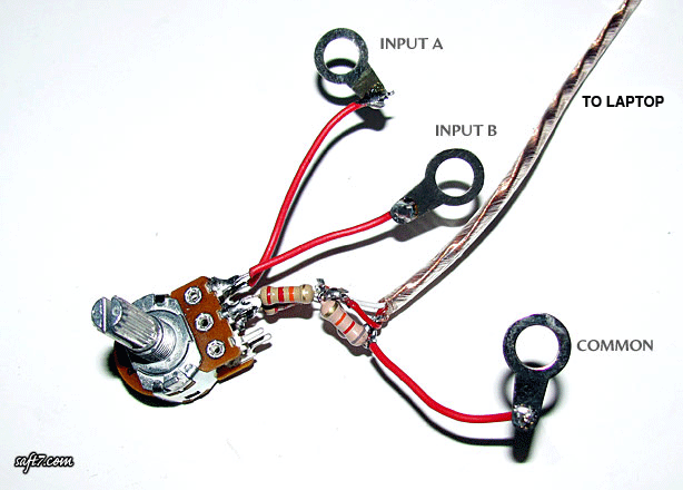 • El potenciómetro sirve como resistencia de voltaje de entrada. Si el voltaje está por encima de 5 voltios, ajuste el potenciómetro necesariamente para impedir que se dañen por exceso de tensión de entrada la tarjeta de sonido.