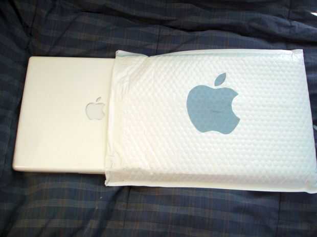 El anuncio publicitario de burbuja sí mismo es una manga suficiente para los deberes de una mochila. No quiero hacer prueba de gota lo, pero no tienen hasta ahora ninguna queja. También he añadido un sencillo logo de la manzana al frente utilizando hojas de impresora transparente. Si usted ya no tiene estos, sería coste-prohibitivo (al menos en el sentido de la utilización de un anuncio publicitario de burbuja para proteger un ordenador portátil.) Compré mi paquete en la sección de separación de grapas. Mi Mac es un iBook, por lo que tomé una manzana representativa. Elige el tuyo en consecuencia.