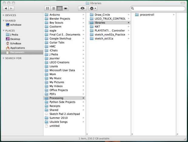 Ahora que tenemos ambos paquetes, instalar procesamiento y descomprimir la biblioteca ProControll.