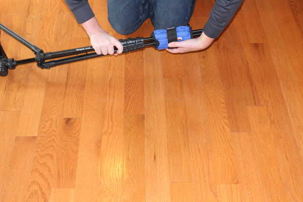 Paso 5: Una de las patas del trípode tire hacia arriba como se muestra. Agregar contrapesos de equilibrio a las otras dos patas