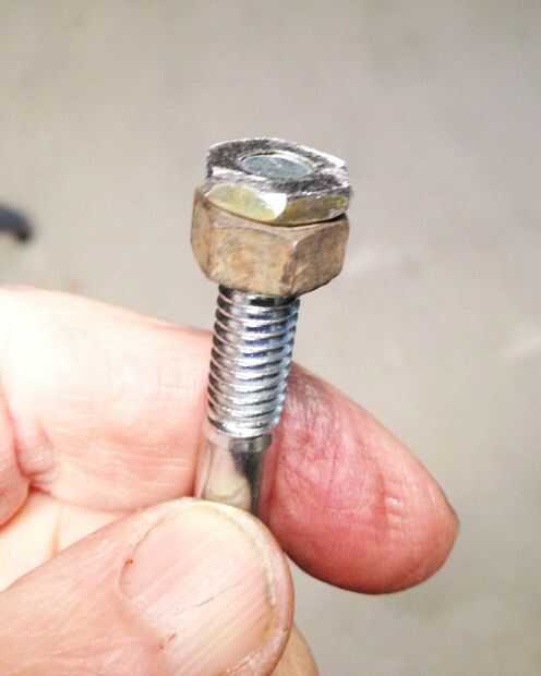 Con un perno de 5/16 pulgadas largo lo suficiente para mantener durante el amolado en una rueda, del hilo de rosca en dos tuercas. Uno es la tuerca que tierra por lo que mantiene con unos hilos por encima del extremo del tornillo como en la primera foto. Moler la tuerca hasta que quede con el extremo del perno en la segunda foto. Prueba la tuerca en el perno split y trabajar la tuerca hasta que se convierte suavemente en el perno de la fractura.