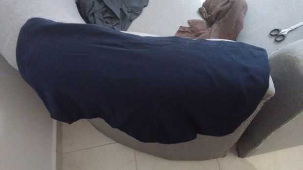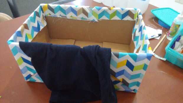 Con camiseta, corte la parte inferior y coser para crear una cubierta, coloque dentro de la caja.