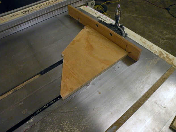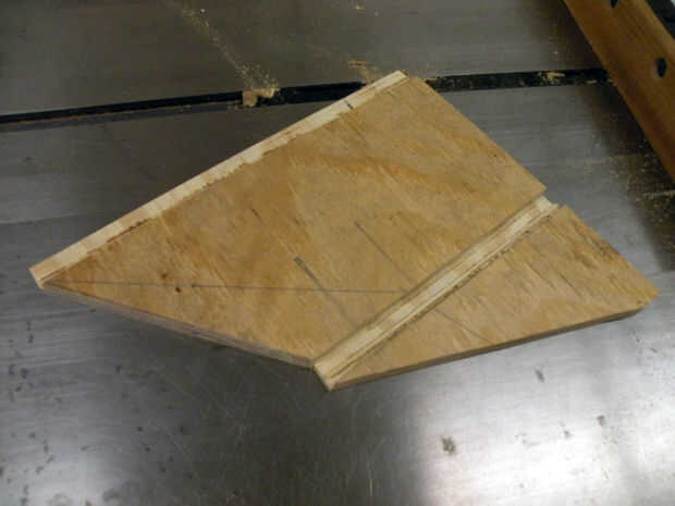 Marcar primero las ranuras en los extremos: dos paralelo las pistas, 3/4" ancho, uno en la parte superior y una 8" hacia abajo desde la parte superior. Usando un calibrador de inglete o un trineo del crosscut para apoyar la pieza de patadas, ejecutar las piezas sobre la mesa la hoja de sierra, a una altura de 5/16". Scoot la pieza en el ancho de la cuchilla, corte otra vez, y repetir hasta máximo 3/4" ancho había sido quitado.