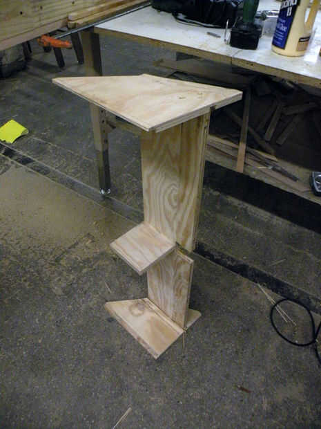 Fijar los trozos cortos a la estrecha plataforma con tornillos de cabeza avellanada de 3" y el pegamento, asegurándose de que limpiar las superficies (una abrazadera del resorte puede ayudar. Alinee los extremos de las piezas, dejando un espacio cuadrado de 2" en el centro para la persecución de cable. Alternativamente, hacer una plataforma sólida de una pieza y cortar a la persecución de cable con un serrucho o una sierra caladora.