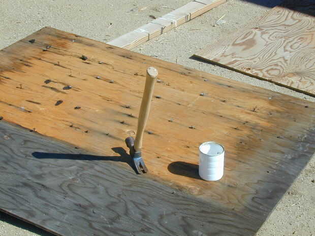 Coloque las piezas seleccionadas y quite todos los clavos y papel de techo, teniendo cuidado de recoger todos los clavos quitados. Cada clavo suelto es un potencial neumático (o antitetánica). Raspe cualquier trozos grandes de material extraño.