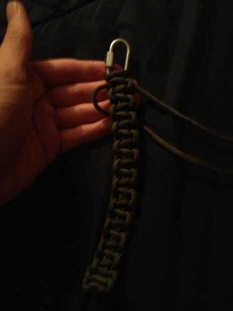 Paso 1: Usar cualquier llavero desea el paracord a través del lazo y decidir cuánto quiere que sea entonces la corbata en la basePaso 2: Paso 2 Después de tener la base atada tire una sola hebra de la cuerda sobre el lazoPaso 3: Paso 3Coge el abrigo